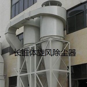 长锥体旋风除尘器具有体积小、用料省、除尘效率高的优点,适用于捕集非黏性的金属、矿物、纤维性粉尘、刨花和木屑。