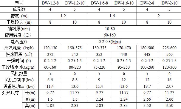 带式干燥机是成批生产用的连续式干燥设备,用于透气性较好的片状、条状、颗粒状物料的干燥,对于脱水蔬菜、催化剂、中药饮片等类含水率高、而物料温度不允许高的物料尤为合适;该系列干燥机具有干燥速度快、蒸发强度高、产品质量好的优点,对脱水滤饼类的膏状物料,需经造粒或制成条状后方可干燥。