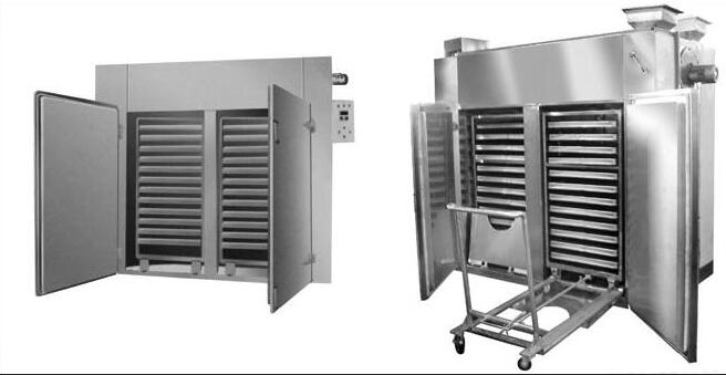 它是利用蒸汽或电为热源,通过加热器加热,大量热风在箱内进行循环,而新鲜风不断从进风口进入箱体补充,然后高含湿风不断从排湿口排出,从而增加了传热效果,使箱内物料水份逐渐减少。该设备是利用强制通风的作用,设有分风装置,风叶调节,使上下温差处于佳状态。